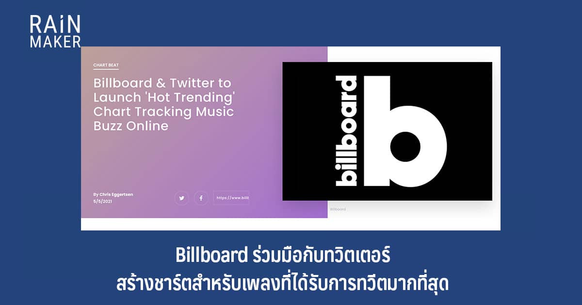 ทวิตเตอร์ร่วมกับบิลบอร์ดในการจัดลำดับชาร์ตเพลง “The Billboard Hot Trending Powered by Twitter” ที่จะมีการอัปเดตชาร์ตในทุกๆ วัน และยังเปิดให้สามารถซื้อสปอนเซอร์โฆษณาได้อีกด้วย