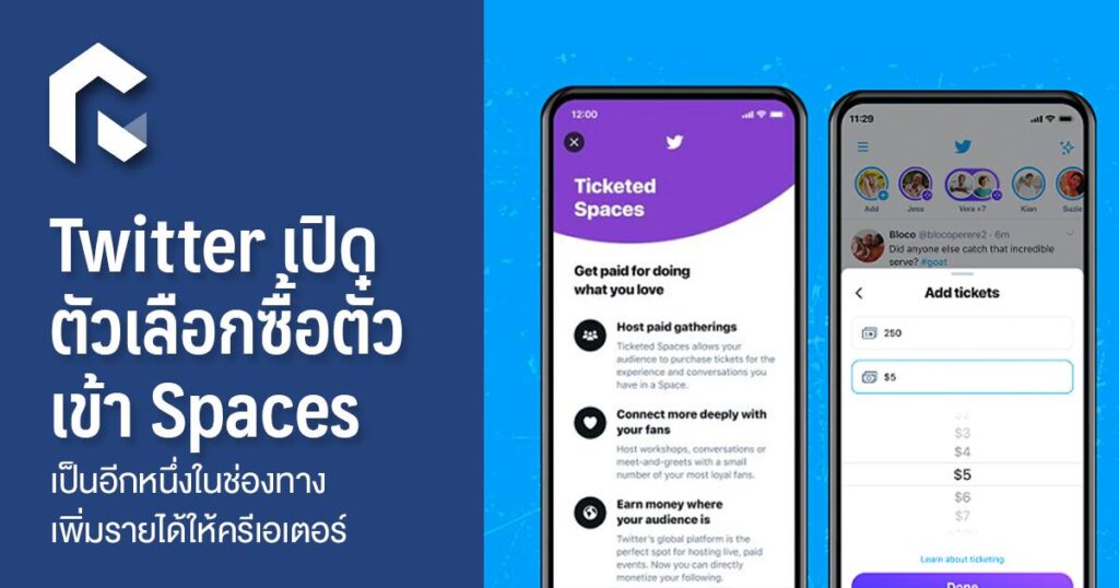หลังจากทดสอบตัวเลือกนี้กับผู้ใช้ที่เลือกไว้ในช่วงสองสามเดือนที่ผ่านมา Twitter ก็ประกาศว่าได้เปิดให้บริการ “Ticketed Spaces” หรือการซื้อตั๋วเพื่อเข้าร่วม Space แก่ผู้ใช้มากขึ้น เป็นอีกหนึ่งช่องทางเพิ่มเติมสำหรับการสร้างรายได้ของครีเอเตอร์บนแพลตฟอร์ม ซึ่งจะกลายเป็นองค์ประกอบสำคัญในกลยุทธ์ที่กว้างขึ้นของ Twitter เพื่อเพิ่มการใช้งานและดึงดูดผู้ใช้มากขึ้น