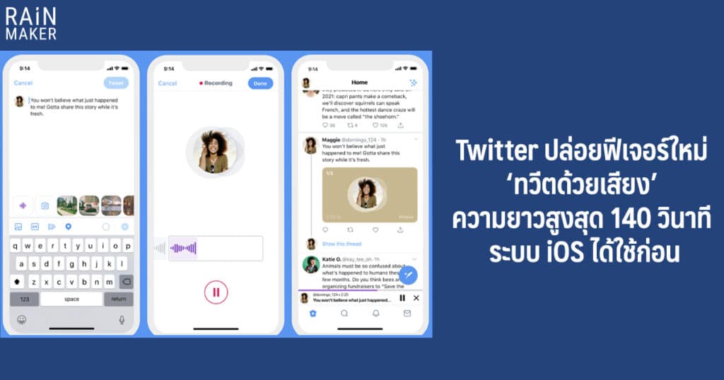 Twitter ปล่อยฟีเจอร์ใหม่ ‘ทวีตด้วยเสียง’ ความยาวสูงสุด 140 วินาที ระบบ iOS ได้ใช้ก่อน