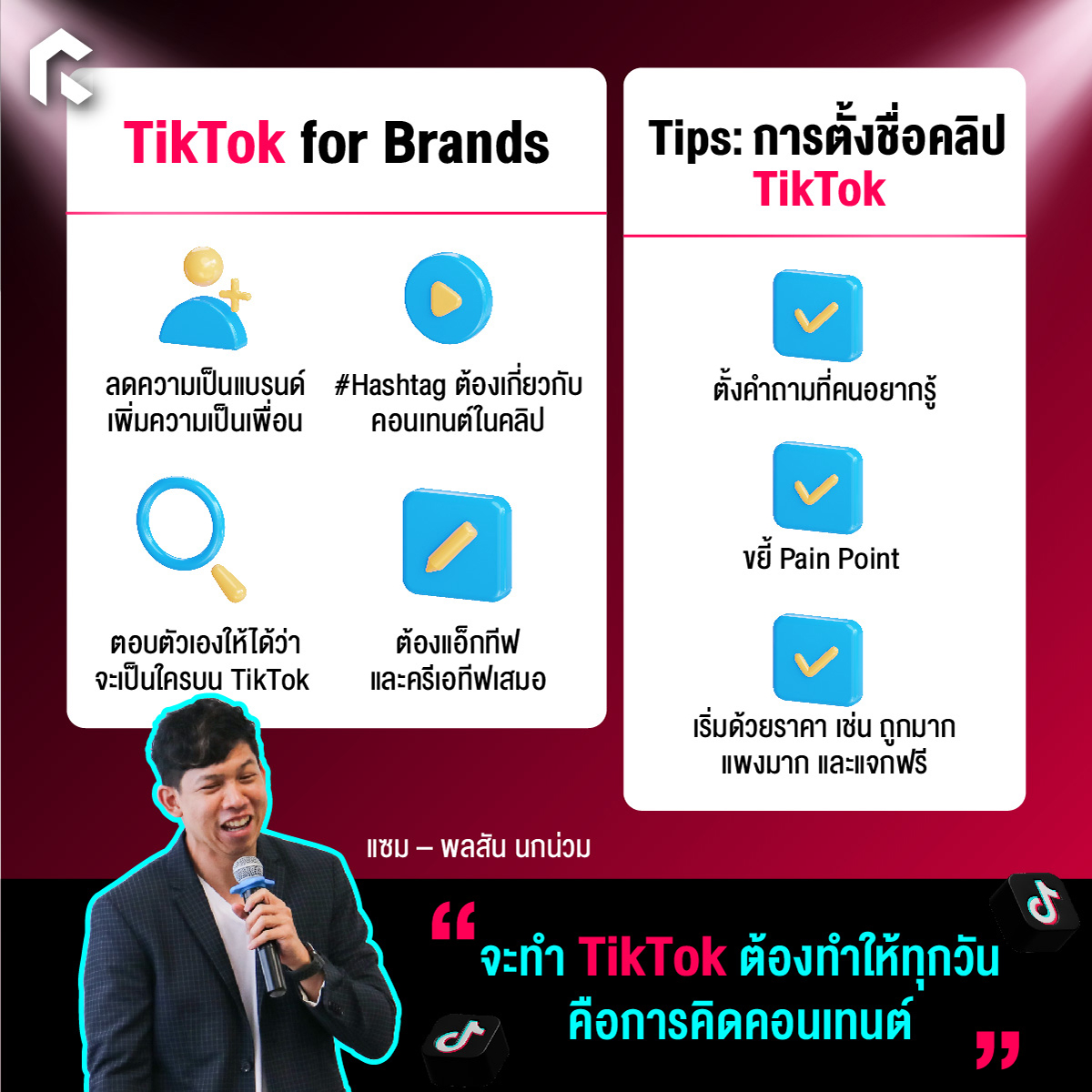 แต่ไม่ต้องเป็นกังวลไปว่าจะรับมือกับโลกของ TikTok ในปี 2023 ที่กำลังเติบโตขึ้นอย่างไร เพราะวันนี้เรามีสรุปบทเรียน และเกร็ดความรู้เล็ก ๆ น้อย ๆ มาแชร์กัน จาก 3 วิทยากรผู้เชี่ยวชาญด้าน TikToker ตัวจริง ซึ่งจะมีอะไรบ้าง ตามมาเช็กลิสต์เตรียมพร้อมกันได้เลย!