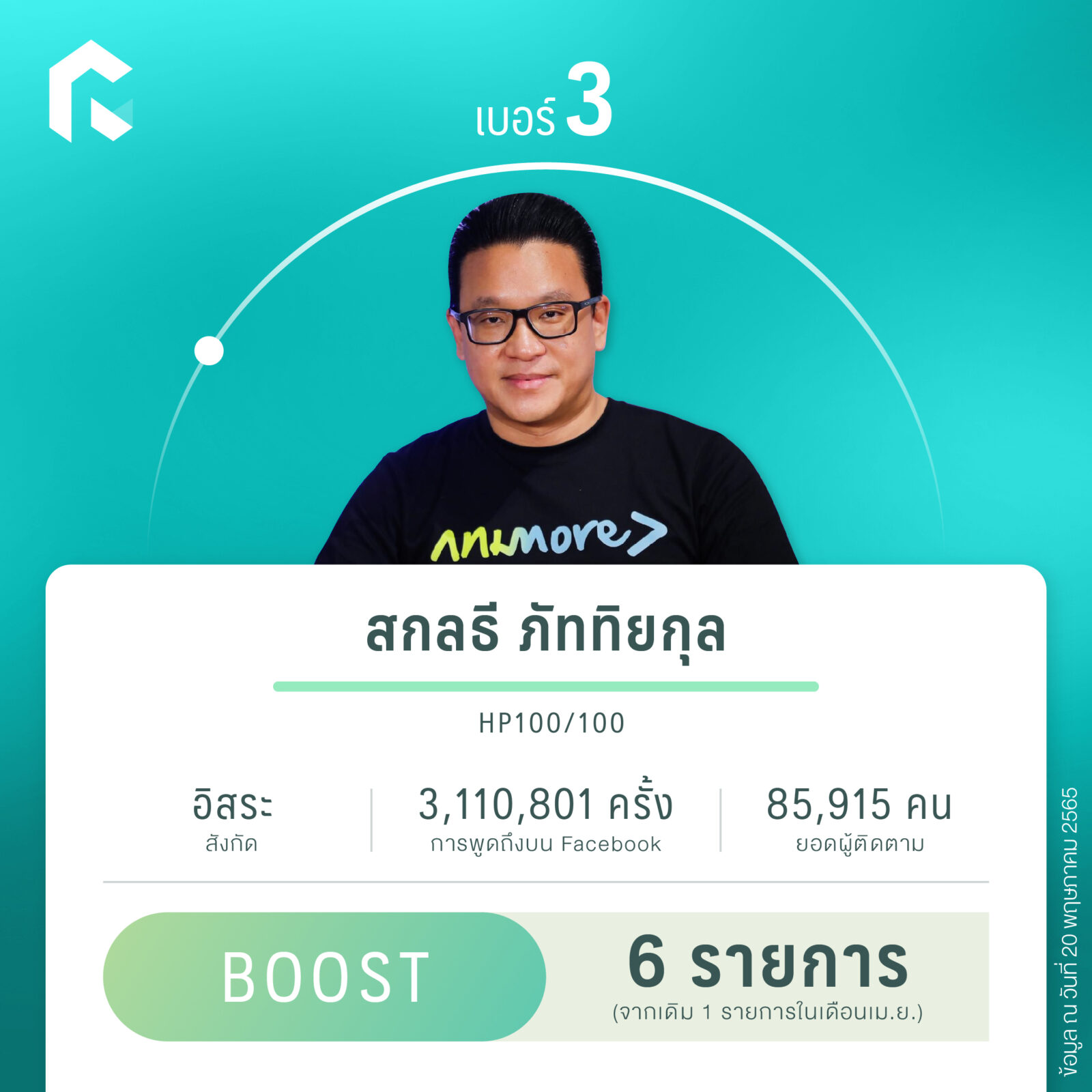 ด้วยแฮชแท็กสุดครีเอทีฟที่มาพร้อมกับนโยบายอันแน่วแน่ที่จะเปลี่ยนกรุงเทพฯ ให้เท่ากัน ภายใต้แนวคิด “กรุงเทพฯ ดีกว่านี้ได้” ด้วยการลงพื้นที่จริงมานักต่อนัก ทำให้ภาพรวมการพูดถึงสกลธีบน Facebook สูงถึง 3 ล้านครั้ง จากเดิมมีการพูดถึง 8 หมื่นครั้ง เพราะกระแสของการดีเบตบนเวทีด้วยความเชื่อมั่นในสถาบันสำคัญของประเทศไทย พร้อมกับหลักความเชื่อที่ว่า “ผู้ว่าฯ ที่มาจากประชาชนเนี่ย ไม่จำเป็นต้องต่อต้านอะไรทุกครั้งไป มันต้องดูบริบท”
