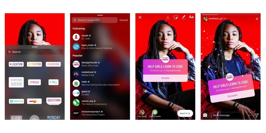 เราจะสามารถเข้าไปช่วยบริจาคในในเคมเปญต่างๆได้ง่ายขึ้น เพียงแค่อัพโหลดรูปลงใน Instagram Stories เลือก Donation เท่านี้ก็จะสามารถหยิบเคมเปญรับบริจาคจากทั่วทุกมุมโลกมารับบริจาคได้อย่างง่ายดาย