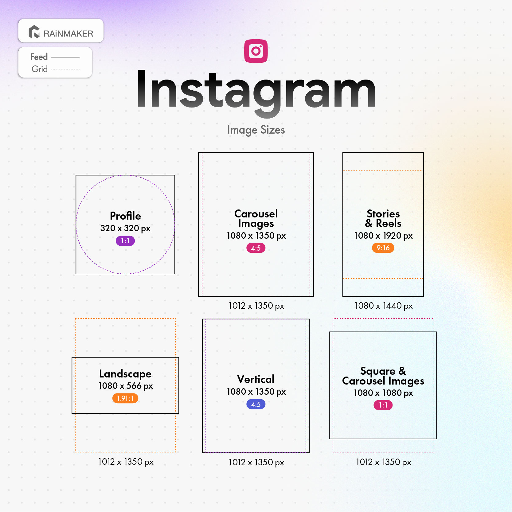 - ภาพสไลด์ (Carousel): 1080 x 1350 px หรืออัตราส่วน 4:5 โดยสามารถใส่ภาพและวิดีโอได้สูงสุด 20 ภาพต่อโพสต์