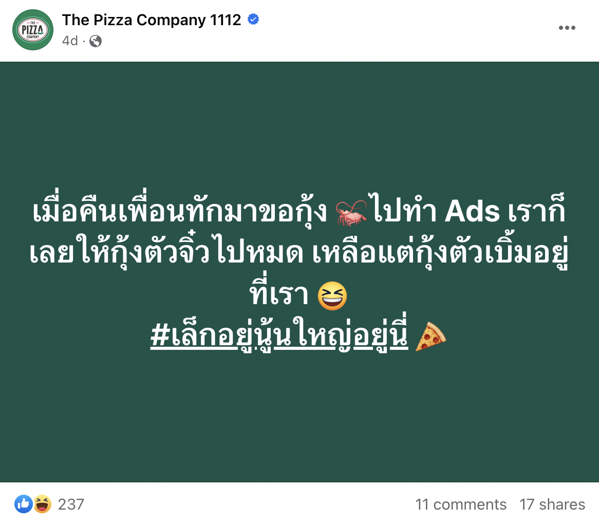 “เมื่อคืนเพื่อนทักมาขอกุ้ง 🦐ไปทำ Ads เราก็เลยให้กุ้งตัวจิ๋วไปหมด เหลือแต่กุ้งตัวเบิ้มอยู่ที่เรา 😆