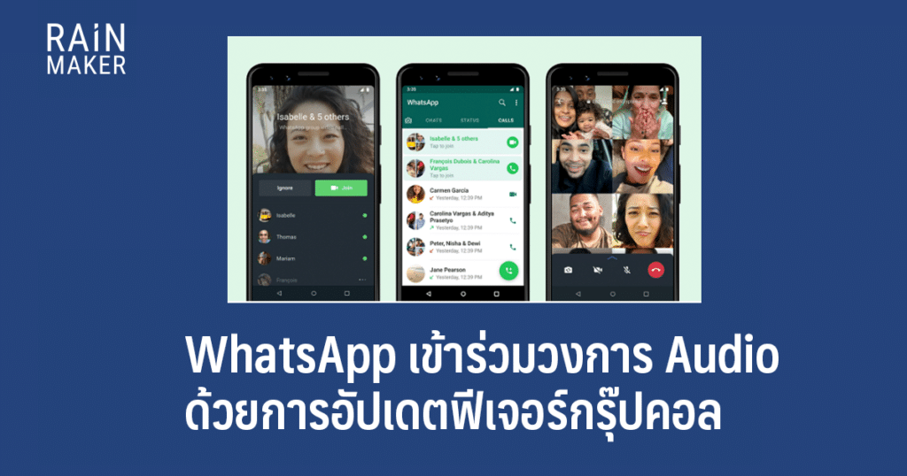 ขณะที่การล็อคดาวน์ยังเกิดขึ้นในหลายพื้นที่ หลายครอบครัวต้องอยู่แยกกัน ทำให้การติดต่อสื่อสารเพิ่มมากขึ้นเรื่อยๆ และเริ่มกลายเป็นกระแสการติดต่อกันเป็นกลุ่มด้วยเสียง WhatsApp จึงได้เพิ่มฟีเจอร์ใหม่ให้เข้ากับกระแสด้วยเช่นเดียวกัน กับความสามารถในการเข้าร่วมกลุ่มได้ แม้จะเริ่มต้นการคอลกันไปแล้ว จะวางสายไปก่อน หรือเข้าร่วมใหม่อีกครั้งก็ยังได้