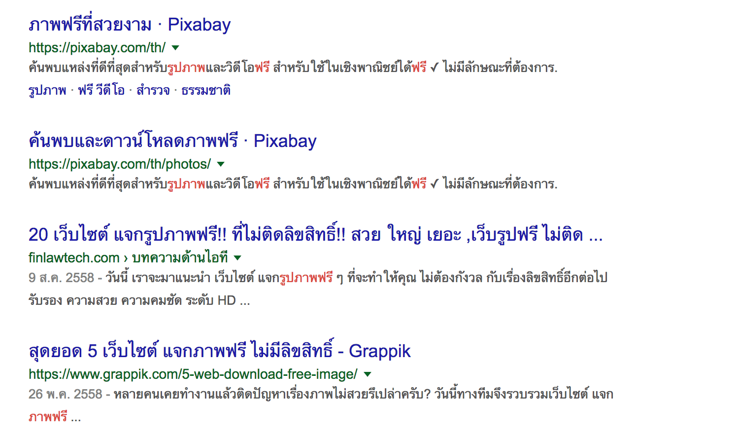 ถ้าลองเข้าไปนับดูใน บทความ จะมีการเน้นคำว่า ภาพฟรี อยู่ทั้งหมด ภาพฟรี 5 จุด ซึ่งก็คือเทคนิคในการทำ SEO อย่างหนึ่งในอีกหลายวิธี ซึ่งวันหลังจะมาเขียนเทคนิคให้อ่านอีกครั้ง