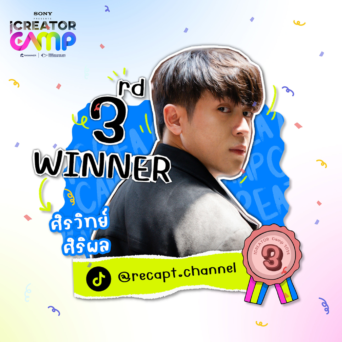- ผู้ชนะอันดับที่ 3: คุณศิรวิทย์ ศิริผล (TikTok: @recapt.channel)