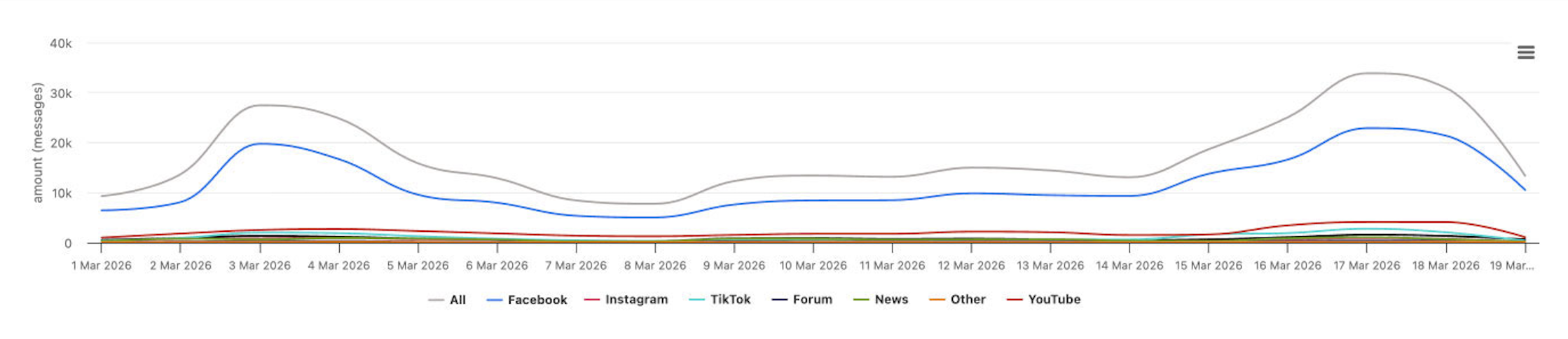 ในช่วง 14–17 มีนาคม 2569 ที่ผ่านมา มีการพูดถึงประเด็น “ภาวะน้ำมันขาดแคลน” พุ่งสูงไปกว่า 9 ล้านครั้งจาก 25,285 ข้อความ เกิดเป็น #น้ำมันขาด กับ #น้ำมันหมด รวมกว่า 5 ล้านครั้งจาก 10,455 ข้อความ และ #ปั๊ม จากการบอกต่อนโซเชียลเกี่ยวกับปั๊มน้ำมันที่ทั้งมีและไม่มีน้ำมันให้บริการแล้ว ซึ่งทั้งหมดนี้ก็สะท้อนให้เห็นถึงความกังวลของผู้คนได้อย่างดี พร้อมกับการตั้งคำถามว่าสถานการณ์นี้ภาครัฐจะดำเนินการด้วยวิธีใดบ้าง
