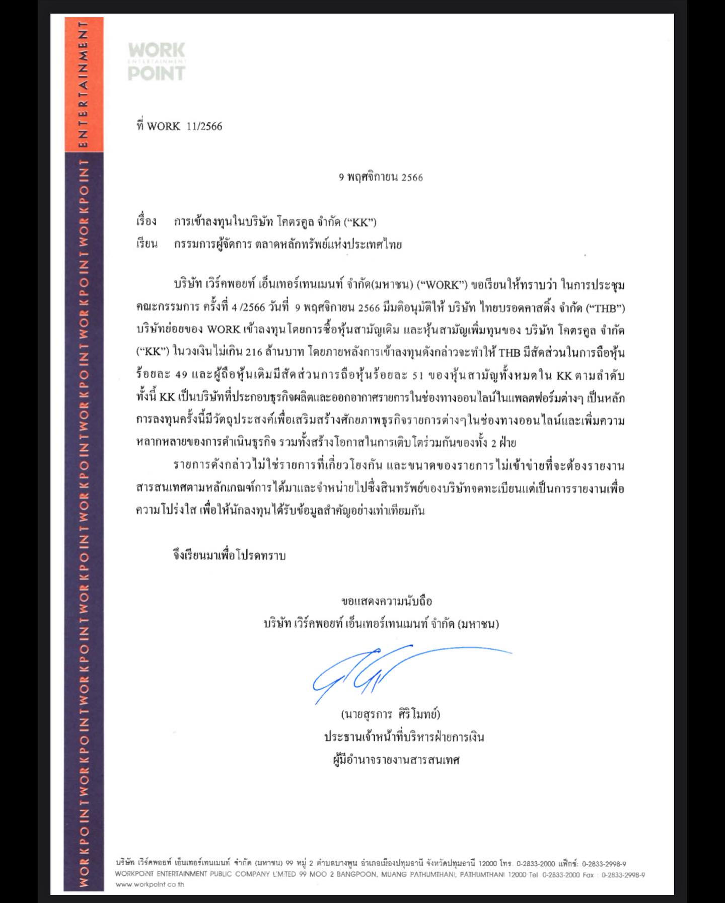 การที่ Workpoint ส่งบริษัทย่อยเข้ามาซื้อหุ้นเช่นนี้ จึงเป็นที่น่าจับตามองว่าบริษัทต้องการจะโฟกัสการผลิตรายการออนไลน์มากขึ้น ผ่านการจับมือกับครีเอเตอร์ที่อยู่บนแพลตฟอร์มออนไลน์อยู่แล้ว