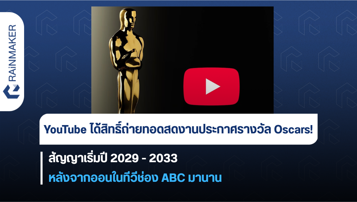 จากเดิมที่ลิขสิทธิ์การถ่ายทอดสดงานประกาศรางวัล Oscars เป็นของช่อง ABC ฝั่งอเมริกามาตั้งแต่ปี 1976 แต่เพราะยุคสมัยและความนิยมในช่องทางการเสพสื่อของผู้คนเปลี่ยนไป ก็ถึงเวลาย้ายมาถ่ายทอดสดที่ YouTube แทนตามที่ Academy of Motion Picture Arts and Sciences ประกาศ โดยจะมีผลตั้งแต่ปี 2029 – 2033 เป็นต้นไป