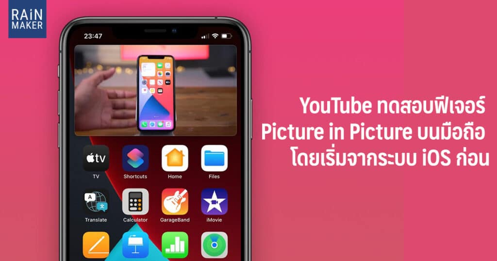 ก่อนหน้านี้หากใครที่ต้องการดูวิดีโอแบบจอเล็ก (Picture in Picture) สามารถทำได้เเล้วหากเราดูผ่านเว็บบราวเซอร์ แต่ล่าสุดยูทูบเผยว่ากำลังทดลองฟีเจอร์นี้ในแอปบน iOS และ iPadOS เช่นเดียวกัน โดยเปิดทดสอบในบางกลุ่มผู้ใช้เท่านั้น เพื่อเตรียมเปิดใช้งานในเร็วๆ นี้