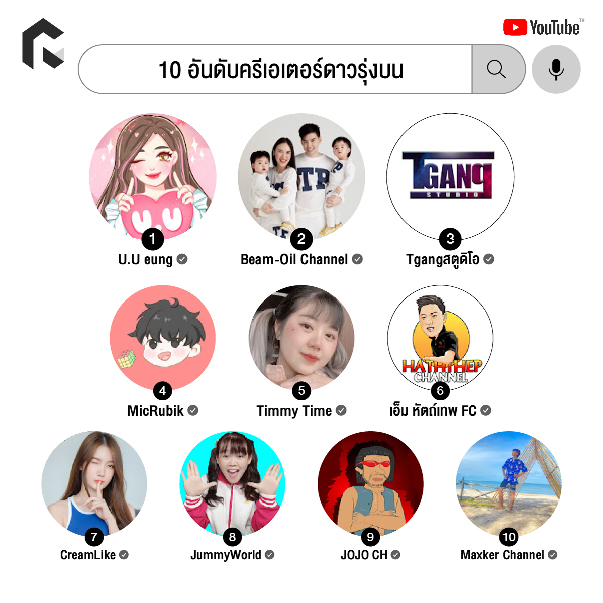 สำหรับครีเอเตอร์ดาวรุ่งอันดับอื่น ๆ มีรายชื่อ ดังนี้