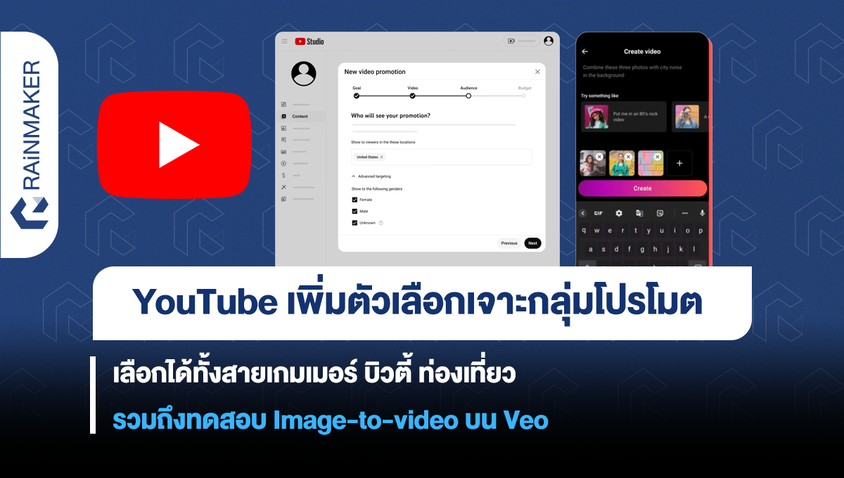 YouTube เพิ่มตัวเลือกเจาะกลุ่มโปรโมต เลือกได้ทั้งสายเกมเมอร์ บิวตี้ ท่องเที่ยว รวมถึงทดสอบ Image-to-video บน Veo